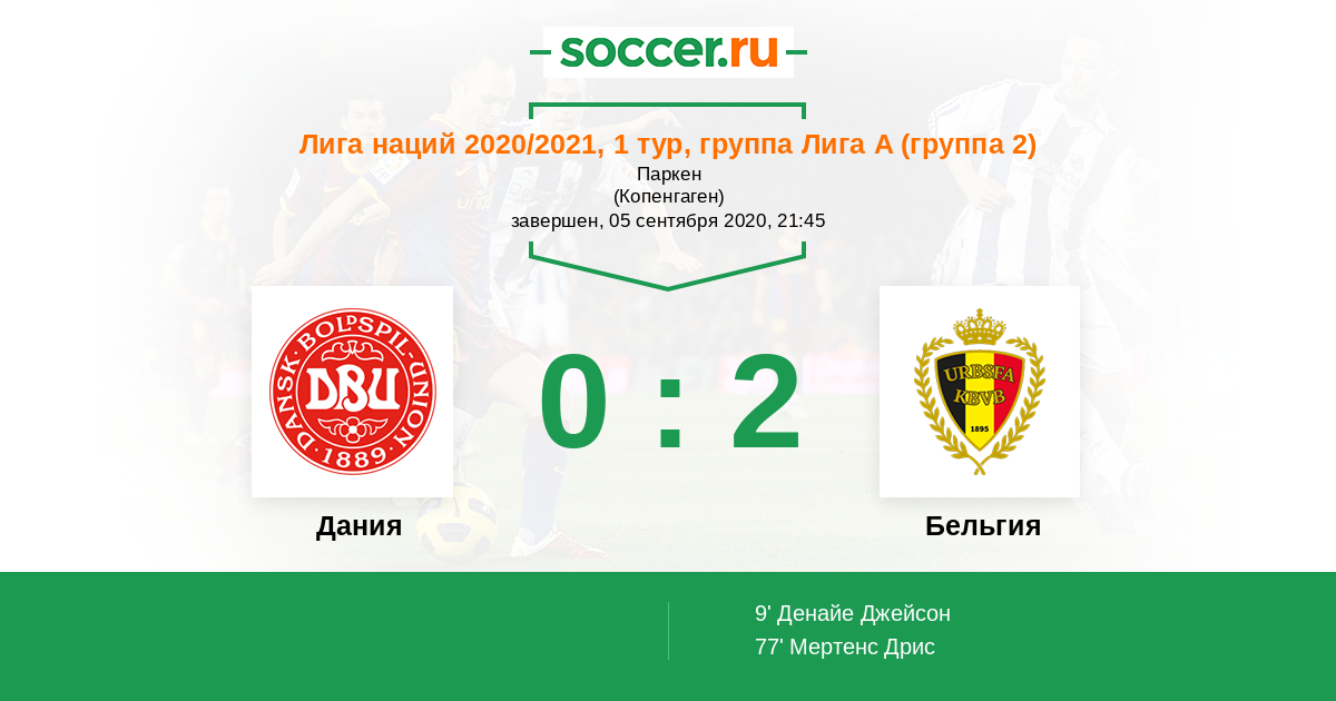 Протокол матча Дания против Бельгия