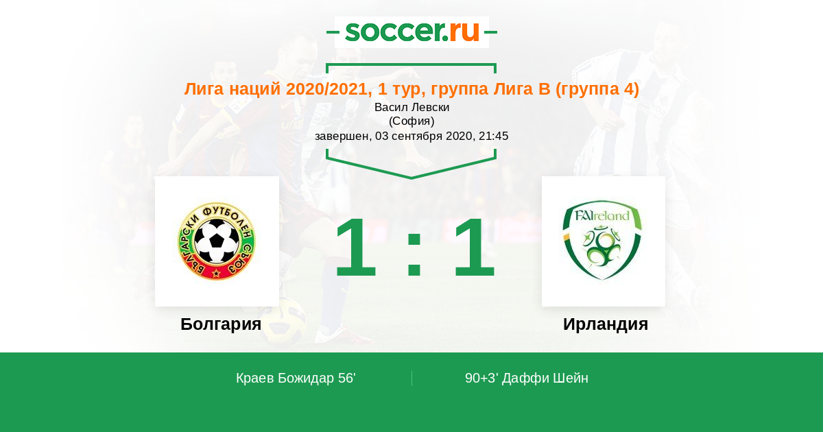 Протокол матча Болгария против Ирландия