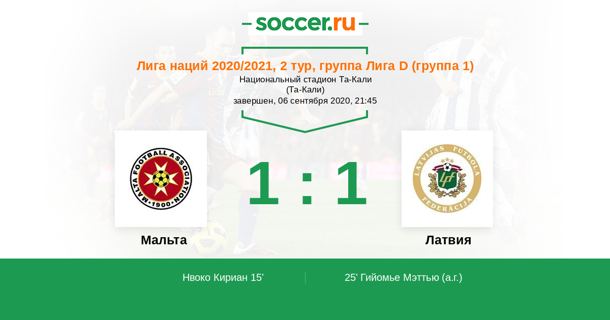Протокол матча Мальта против Латвия
