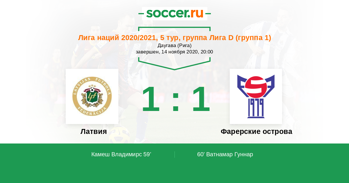 59' (1:0) Камеш Владимирс (7) (Гутковскис Владислав (22))