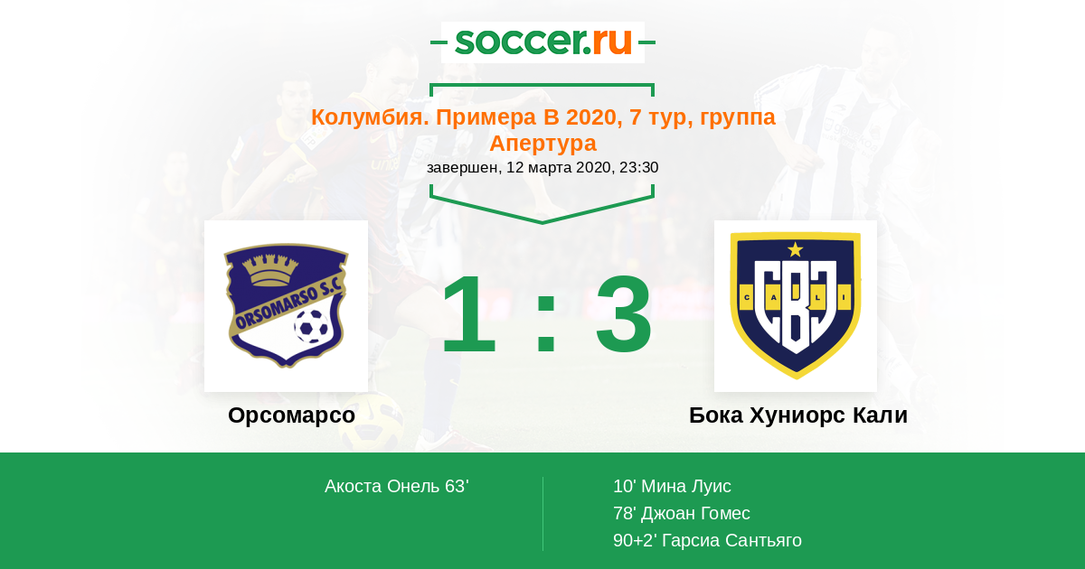Протокол матча Орсомарсо против Бока Хуниорс Кали