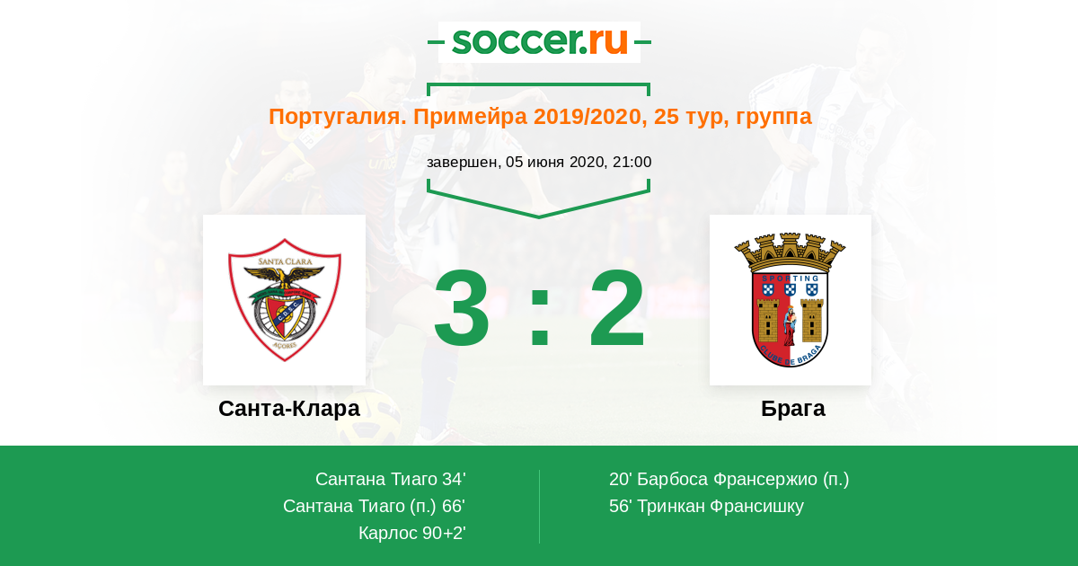 Протокол матча Санта-Клара против Брага