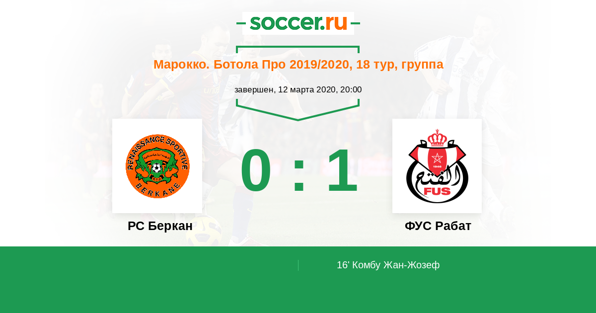 Протокол матча РС Беркан против ФУС Рабат