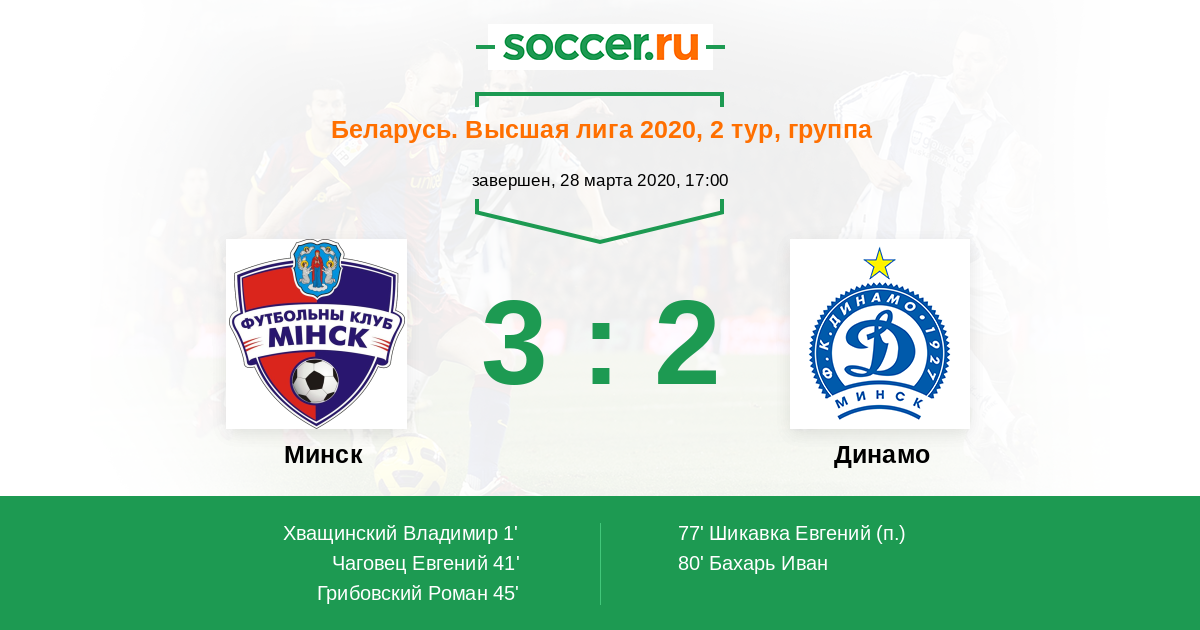 Протокол матча Минск против Динамо