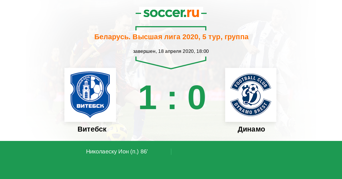 Протокол матча Витебск против Динамо