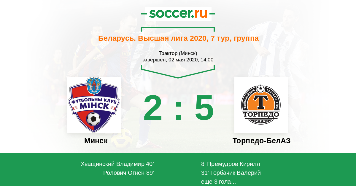 Протокол матча Минск против Торпедо-БелАЗ