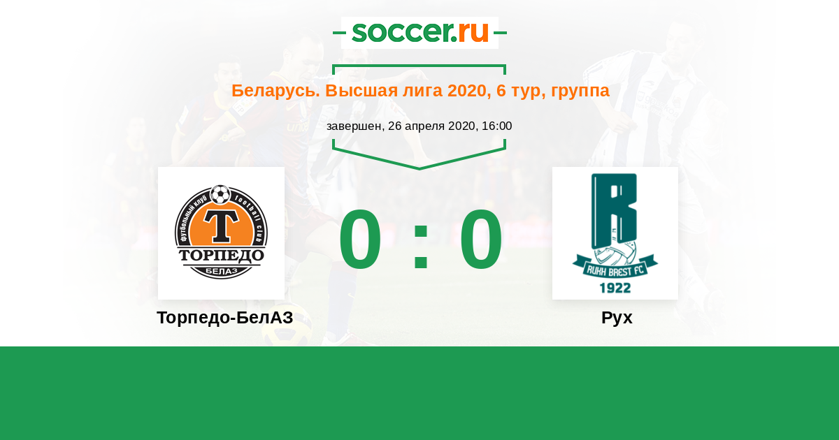 Хороший футбол, уже обменялись 100 % моментами команды. Игра равная. Начало было больше за Рухом, но в конце уже торпедовцы перехватили инициативу. Рамос пока проваливает матч оба шанса запарол. Ждем голов во втором тайме!