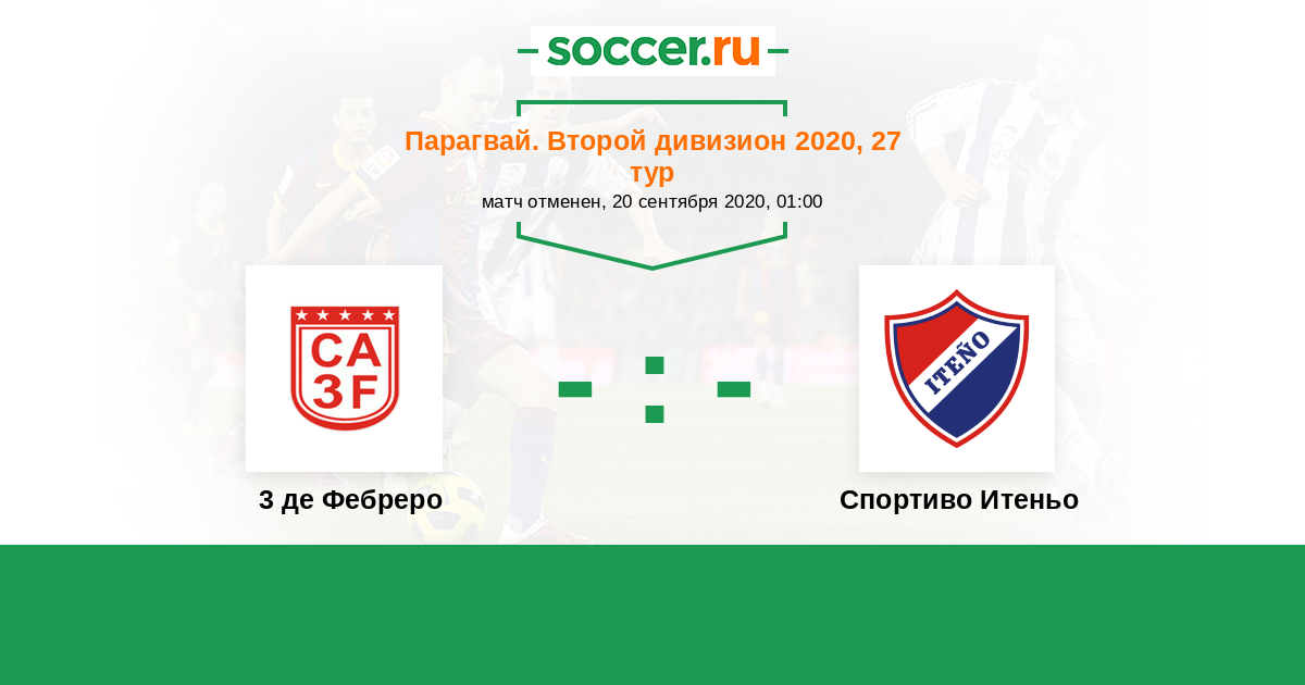 Парагвай. Второй дивизион 17.10.2021 Спортиво Итеньо Логотип футбольный клуб Спортиво Итеньо (Ита) 0:0 Логотип футбольный клуб 3 де Фебреро (Сьюдад-дель-Эсте) 3 де Фебреро