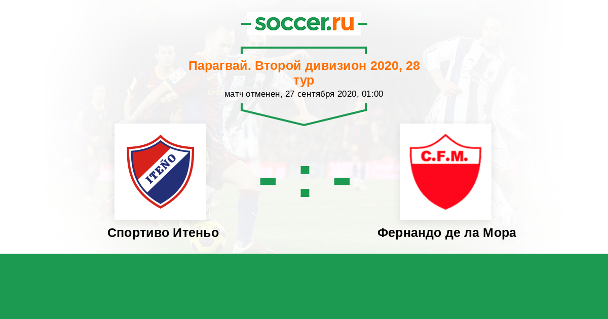 Парагвай. Второй дивизион 18.08.2018 Спортиво Итеньо Логотип футбольный клуб Спортиво Итеньо (Ита) 0:1 Логотип футбольный клуб Фернандо де ла Мора Фернандо де ла Мора
