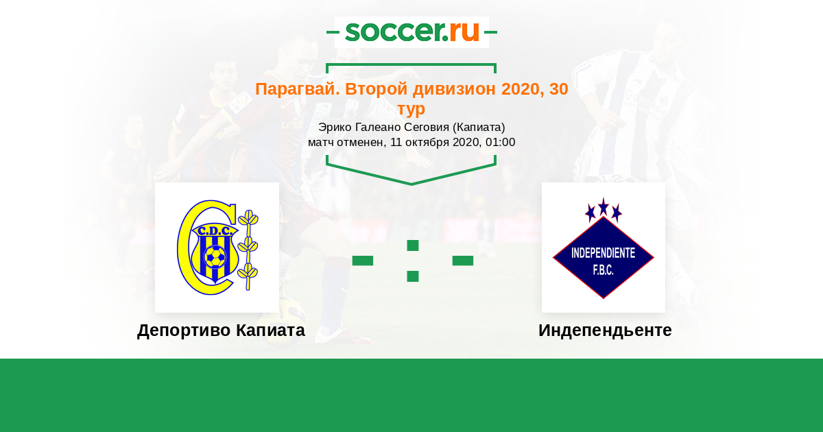 Парагвай. Второй дивизион 13.04.2021 Депортиво Капиата Логотип футбольный клуб Депортиво Капиата 0:3 Логотип футбольный клуб Индепендьенте (Луке) Индепендьенте