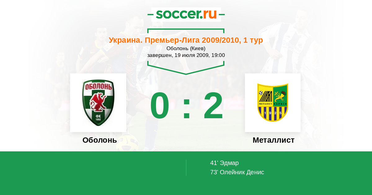 Протокол матча Оболонь против Металлист