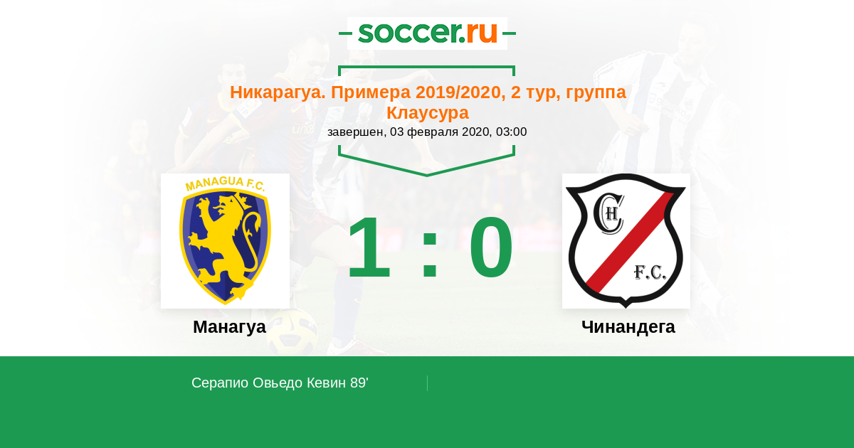Протокол матча Манагуа против Чинандега