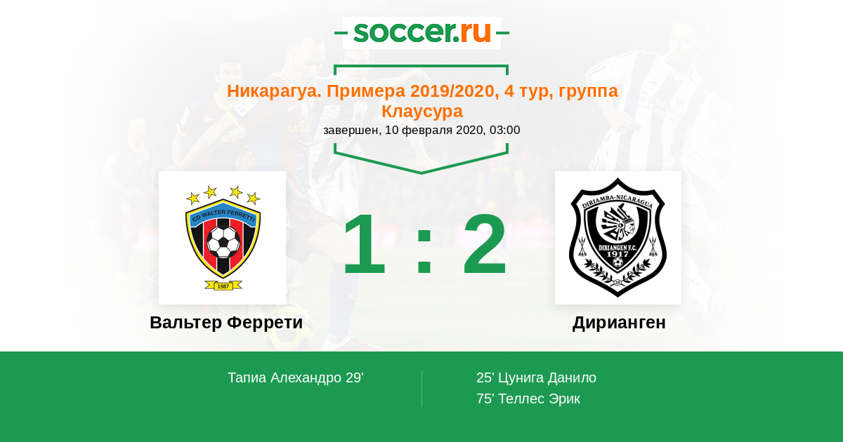 Протокол матча Вальтер Феррети против Дирианген