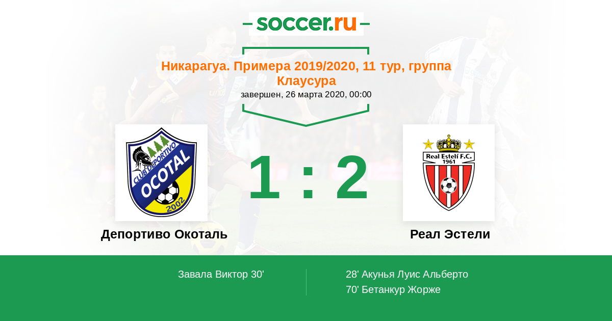 Протокол матча Депортиво Окоталь против Реал Эстели