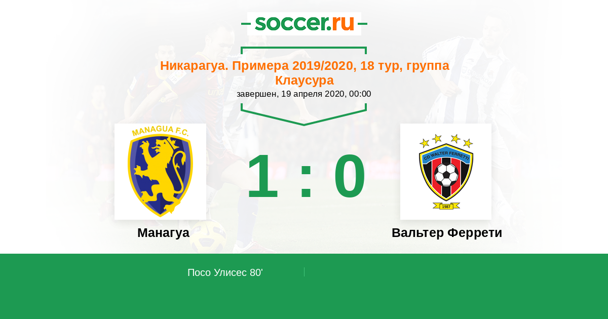 Протокол матча Манагуа против Вальтер Феррети