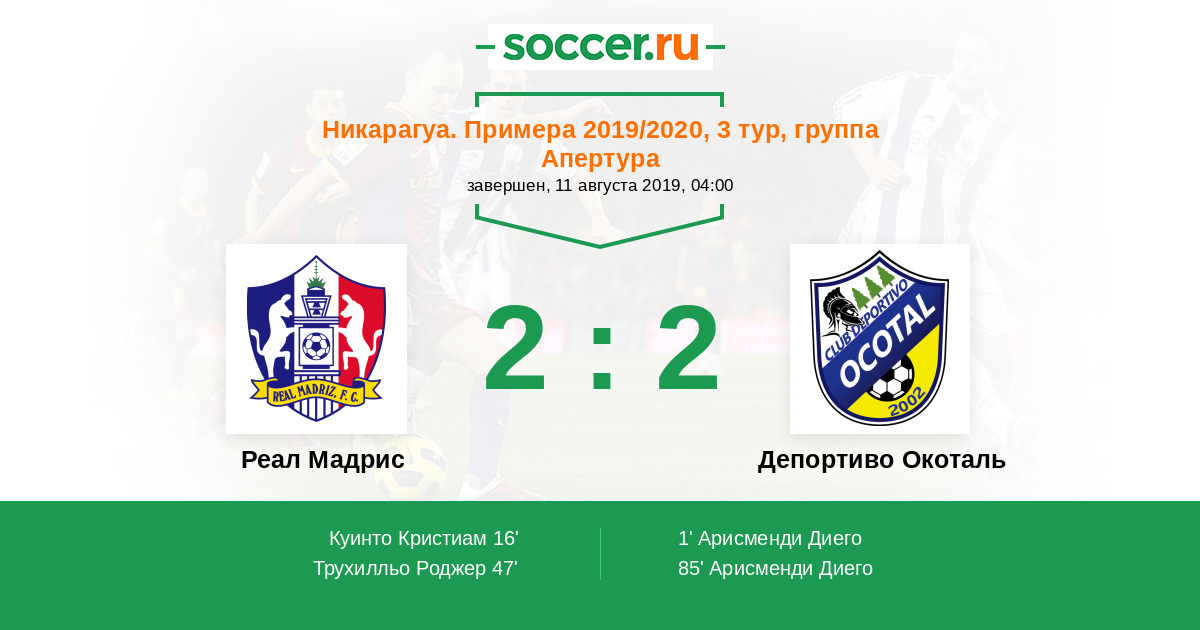 Протокол матча Реал Мадрис против Депортиво Окоталь