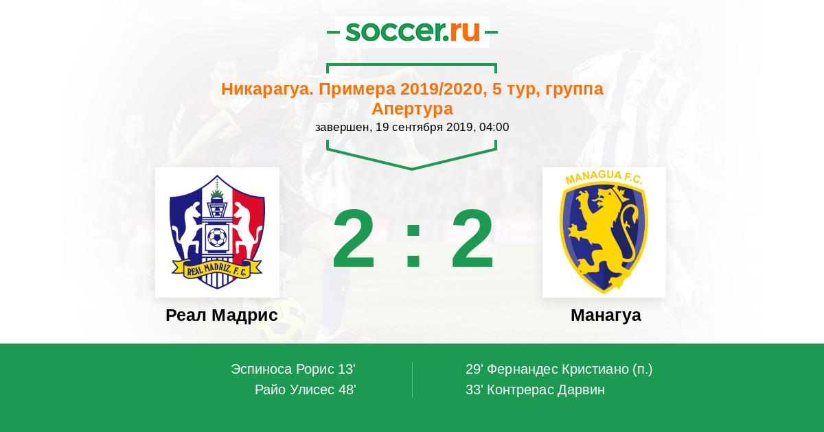 Протокол матча Реал Мадрис против Манагуа