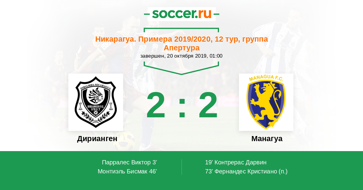Протокол матча Дирианген против Манагуа