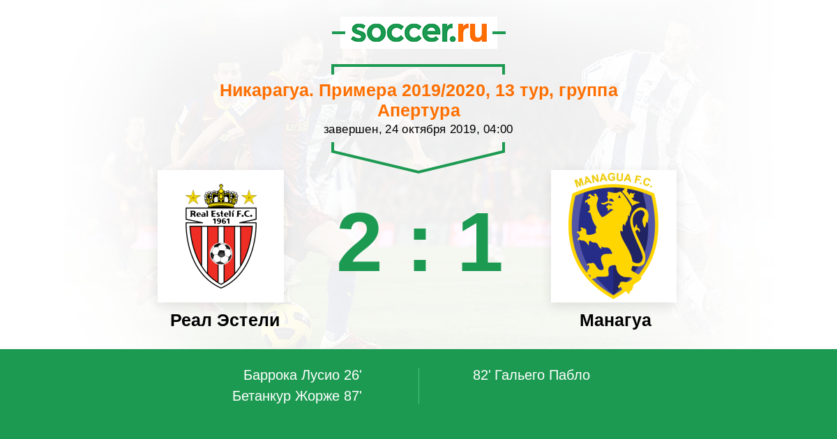 Протокол матча Реал Эстели против Манагуа