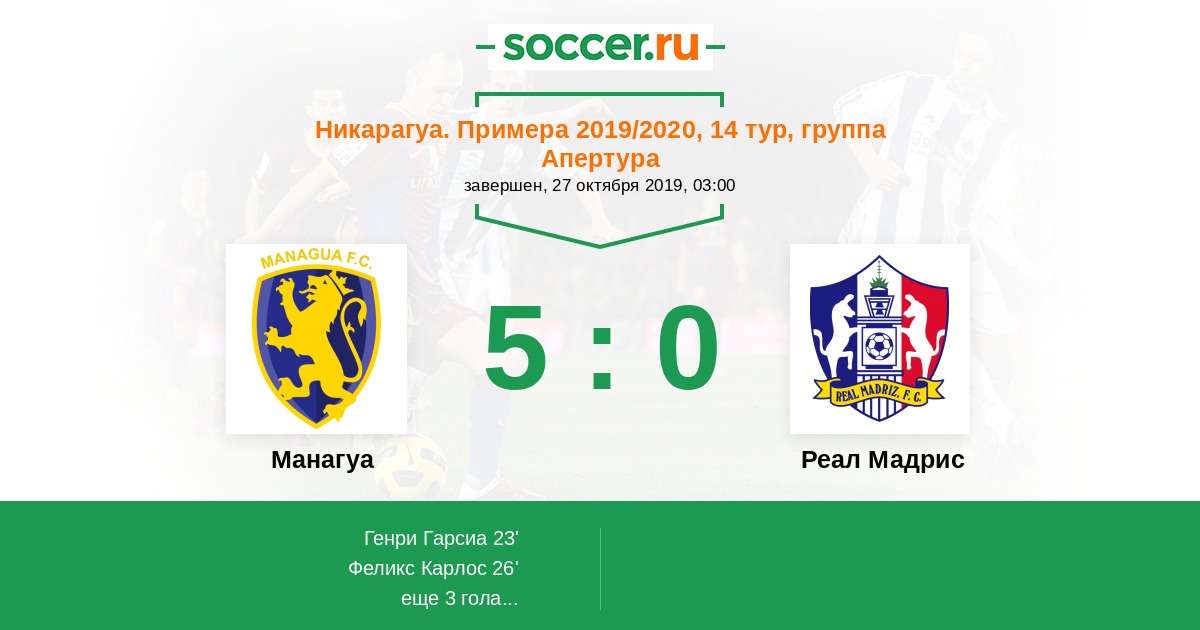 Протокол матча Манагуа против Реал Мадрис