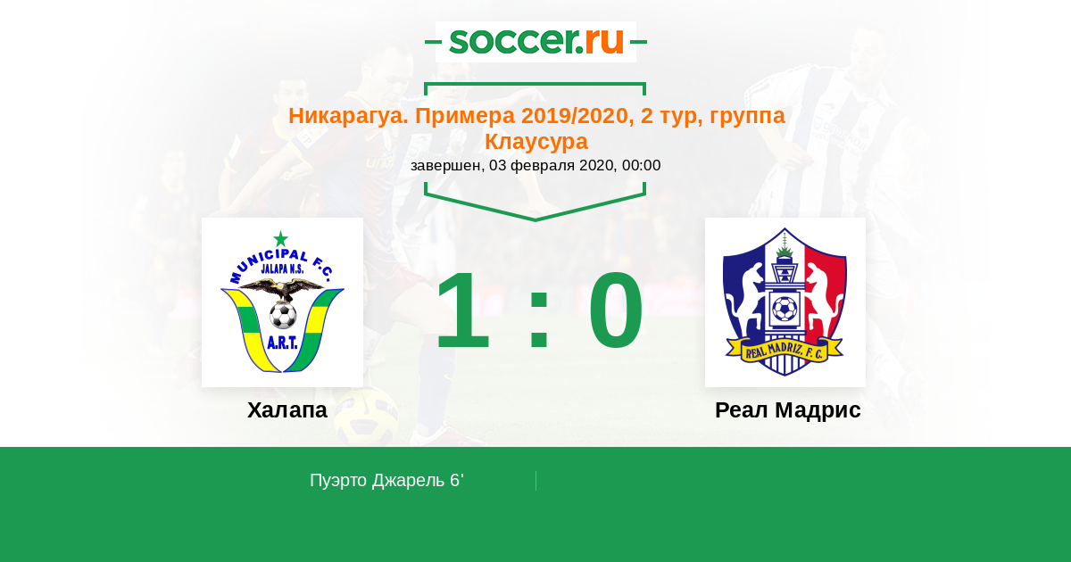 Протокол матча Халапа против Реал Мадрис