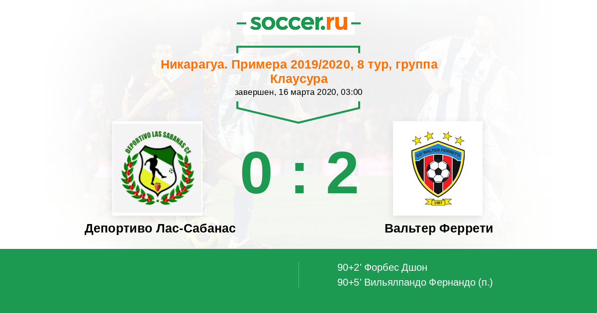 Протокол матча Депортиво Лас-Сабанас против Вальтер Феррети