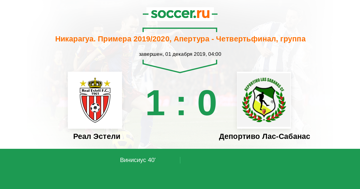 Протокол матча Реал Эстели против Депортиво Лас-Сабанас