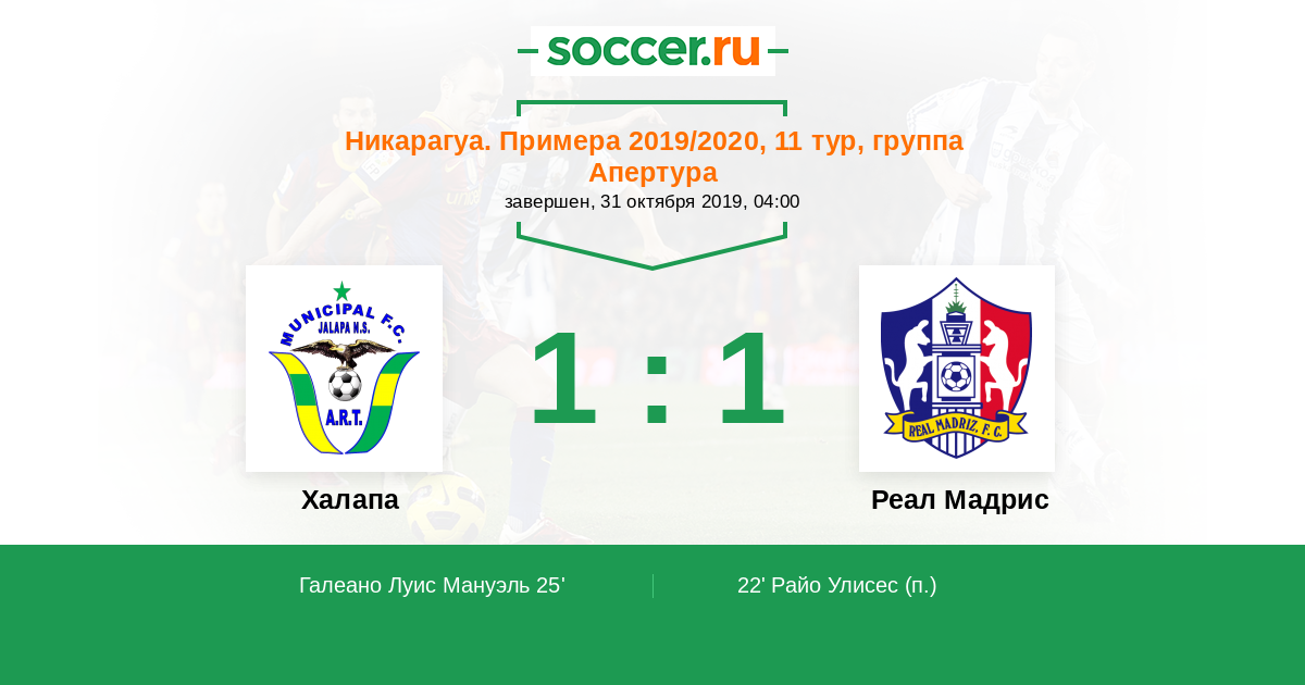 Протокол матча Халапа против Реал Мадрис