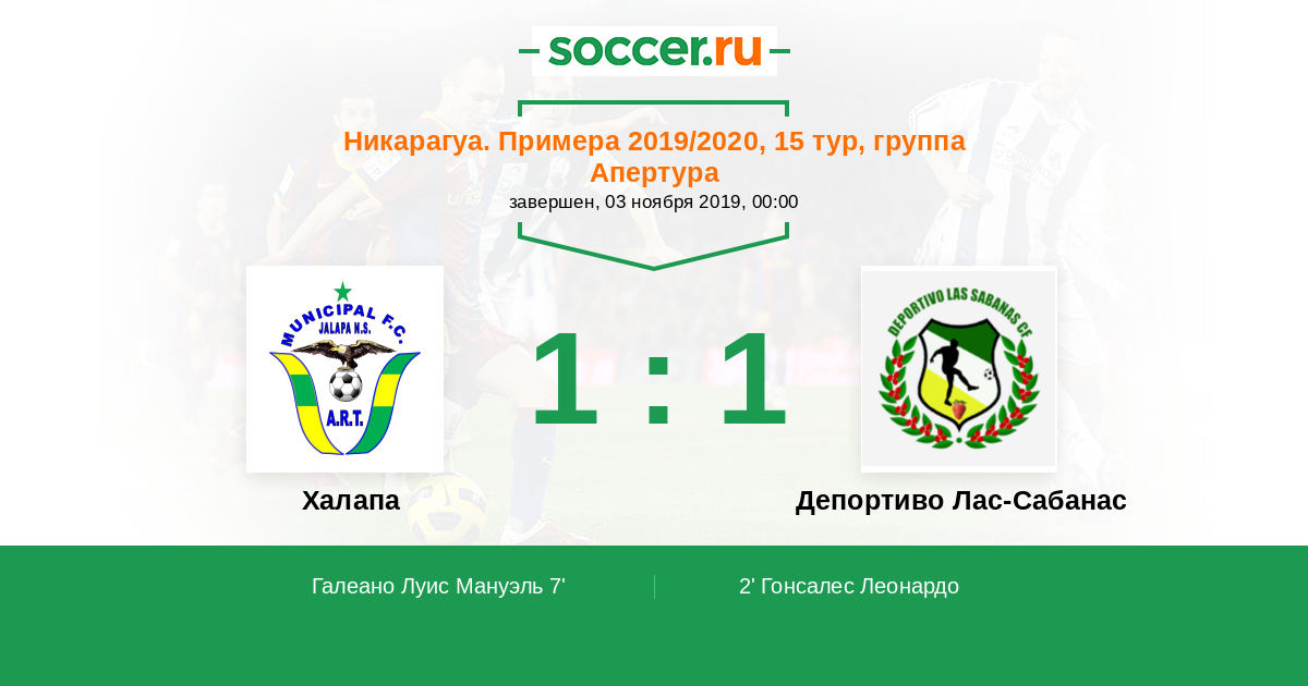 Протокол матча Халапа против Депортиво Лас-Сабанас