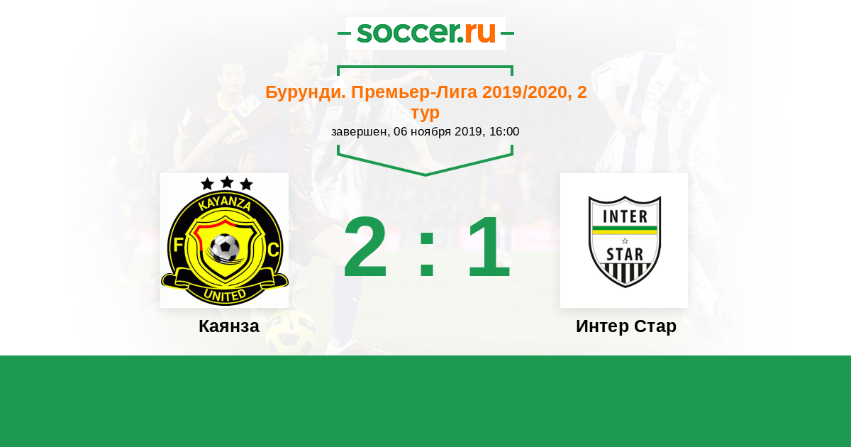 Бурунди. Премьер-лига 27.01.2020 Интер Стар Логотип футбольный клуб Интер Стар (Бужумбура) 2:1 Логотип футбольный клуб Каянза (Муйинга) Каянза