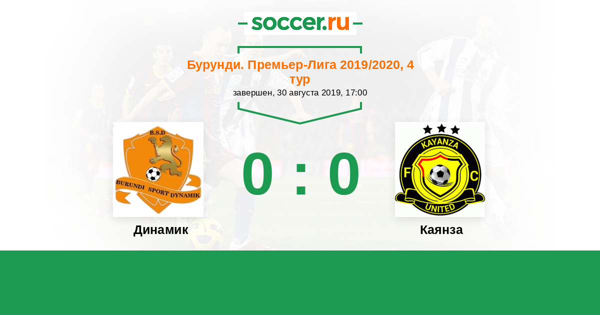 Бурунди. Премьер-лига 08.02.2020 Каянза Логотип футбольный клуб Каянза (Муйинга) 0:1 Логотип футбольный клуб Динамик (Бужумбура) Динамик