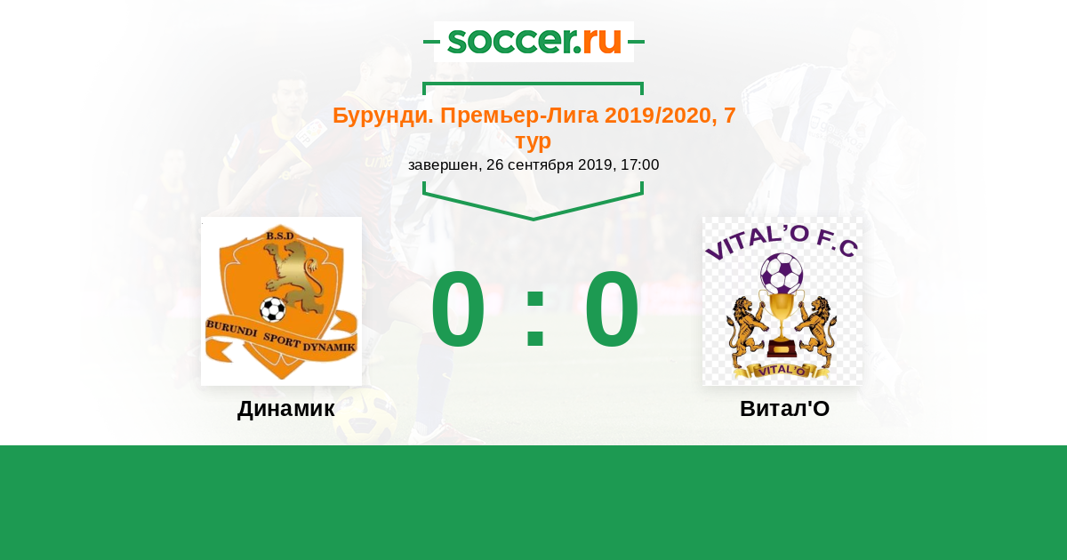 Бурунди. Премьер-лига 05.01.2020 Витал'O Логотип Витал'O 0:1 Логотип футбольный клуб Динамик (Бужумбура) Динамик