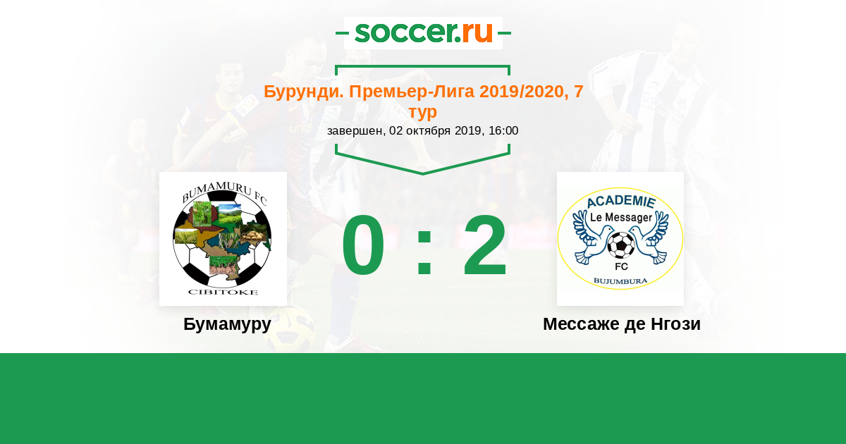 Бурунди. Премьер-лига 22.03.2020 Мусонгати Логотип футбольный клуб Мусонгати (Гитега) 1:1 Логотип футбольный клуб Мессаже де Нгози Мессаже де Нгози