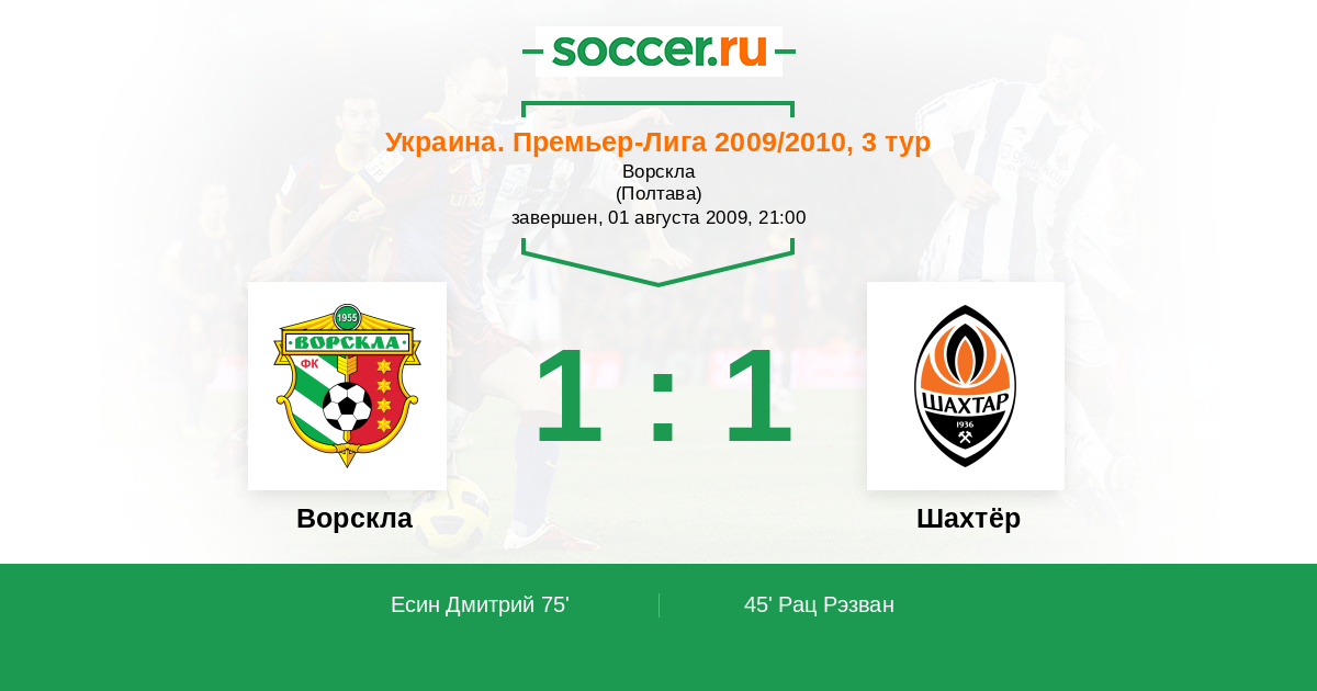 Протокол матча Ворскла против Шахтёр