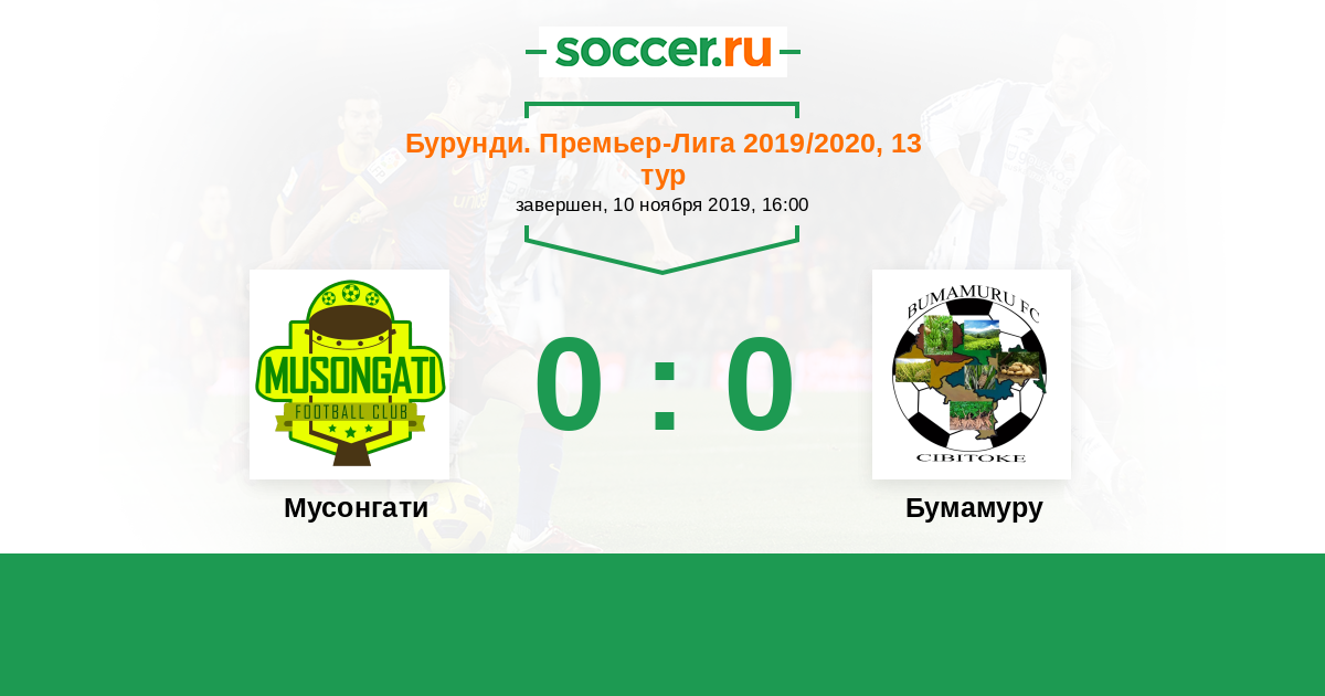 Бурунди. Премьер-лига 05.04.2020 Бужумбура Сити Логотип футбольный клуб Бужумбура Сити 3:3 Логотип футбольный клуб Бумамуру (Буганда) Бумамуру