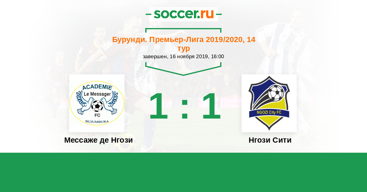 Бурунди. Премьер-лига 22.03.2020 Мусонгати Логотип футбольный клуб Мусонгати (Гитега) 1:1 Логотип футбольный клуб Мессаже де Нгози Мессаже де Нгози