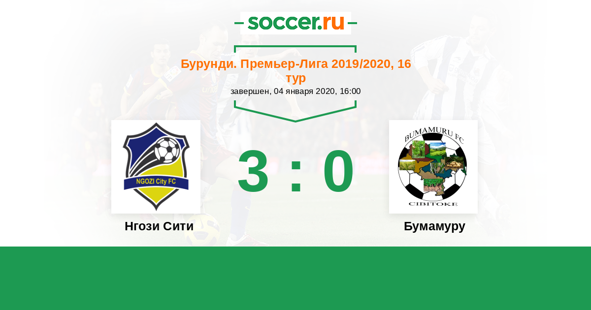 Бурунди. Премьер-лига 19.06.2020 Динамик Логотип футбольный клуб Динамик (Бужумбура) 4:2 Логотип футбольный клуб Нгози Сити (Мвумба) Нгози Сити