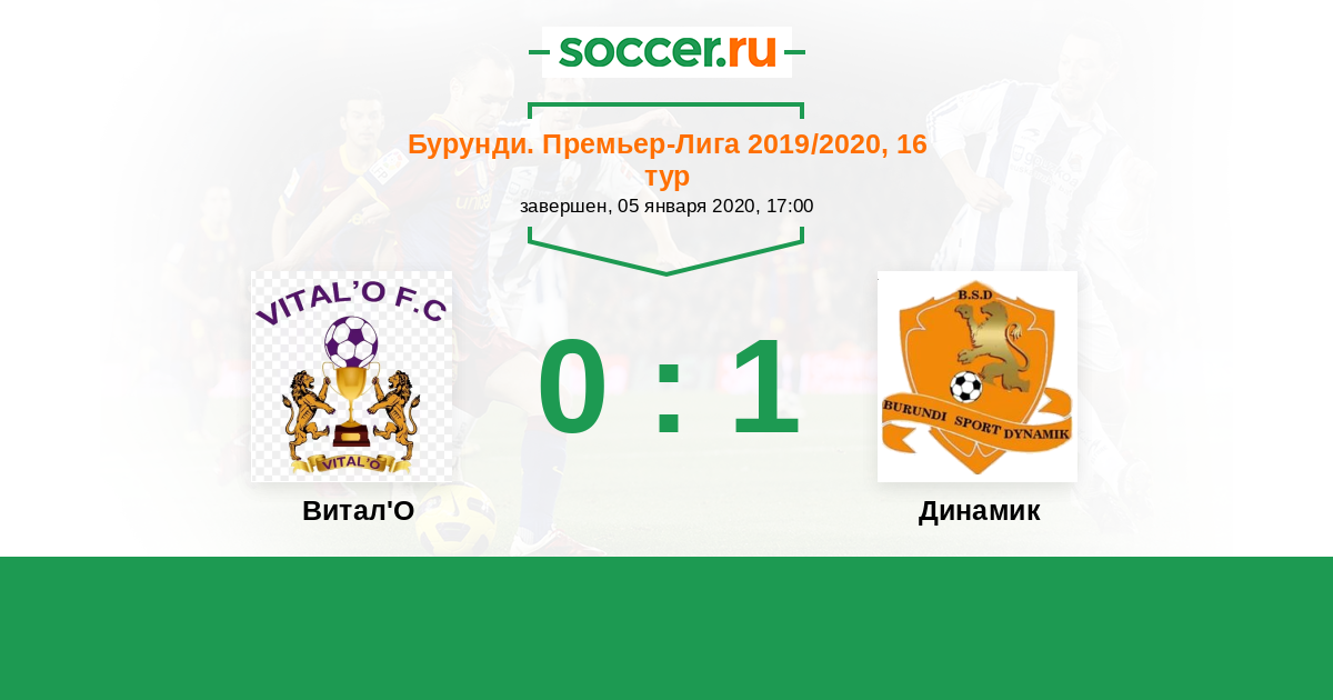 Бурунди. Премьер-лига 19.06.2020 Динамик Логотип футбольный клуб Динамик (Бужумбура) 4:2 Логотип футбольный клуб Нгози Сити (Мвумба) Нгози Сити