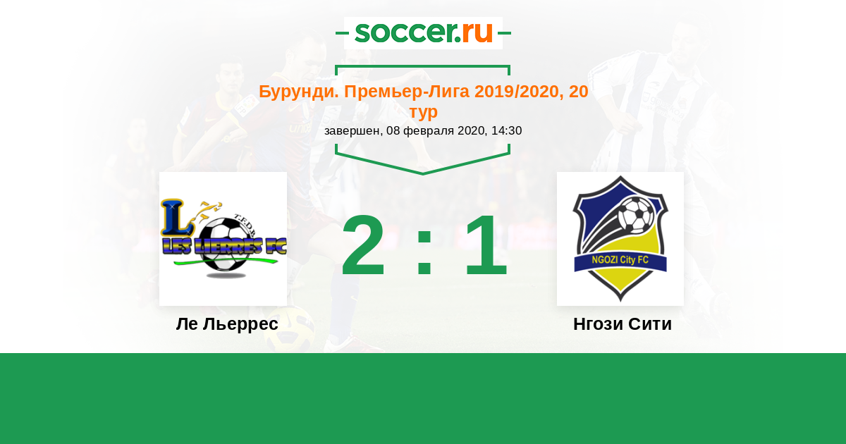 Бурунди. Премьер-лига 23.02.2020 Ле Льеррес Логотип футбольный клуб Ле Льеррес (Бужумбура) 0:2 Логотип футбольный клуб Мессаже де Нгози Мессаже де Нгози