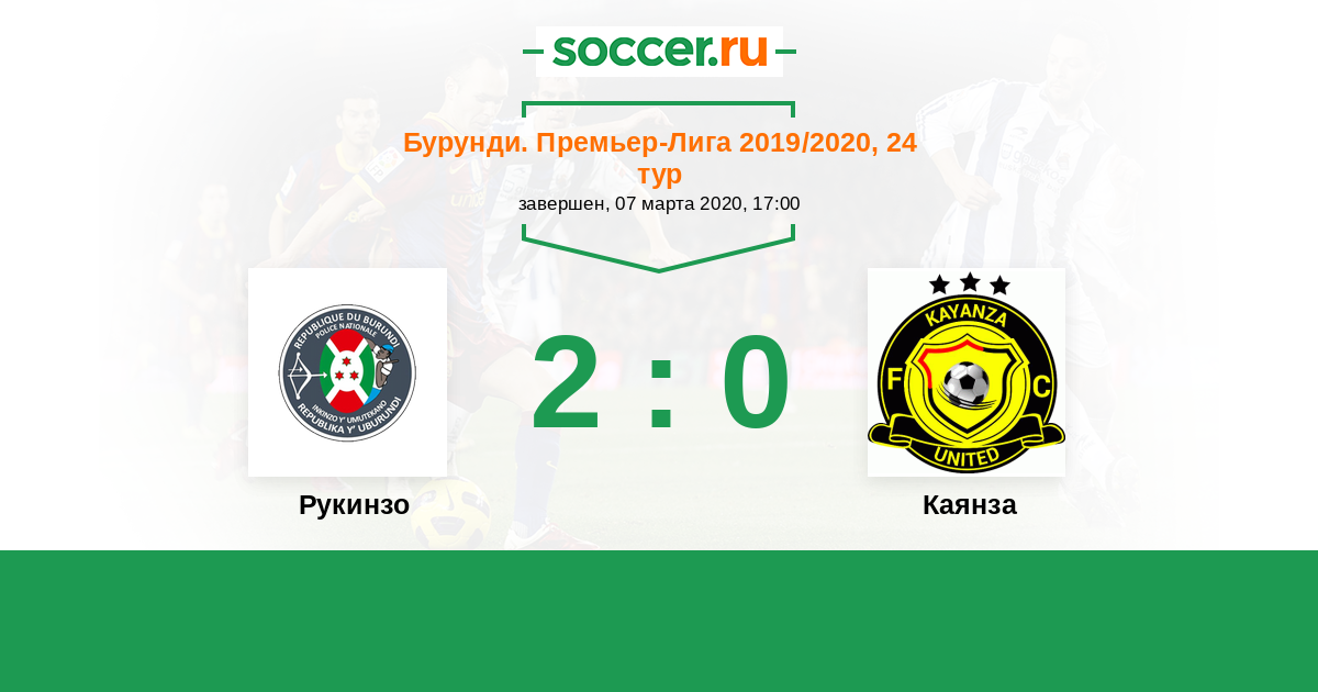 Бурунди. Премьер-лига 07.03.2020 Рукинзо Логотип футбольный клуб Рукинзо (Бужумбура) 2:0 Логотип футбольный клуб Каянза (Муйинга) Каянза