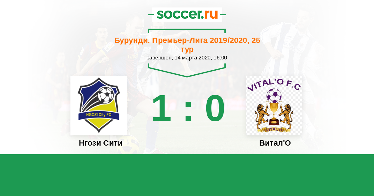Бурунди. Премьер-лига 14.03.2020 Нгози Сити Логотип футбольный клуб Нгози Сити (Мвумба) 1:0 Логотип Витал'O Витал'O