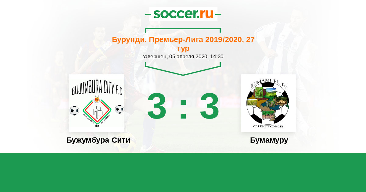 Бурунди. Премьер-лига 05.04.2020 Бужумбура Сити Логотип футбольный клуб Бужумбура Сити 3:3 Логотип футбольный клуб Бумамуру (Буганда) Бумамуру
