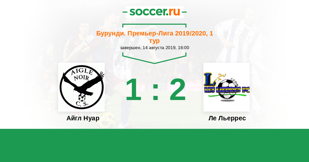 Бурунди. Премьер-лига 23.06.2020 Ле Льеррес Логотип футбольный клуб Ле Льеррес (Бужумбура) 1:6 Логотип футбольный клуб Айгл Нуар (Макамба) Айгл Нуар