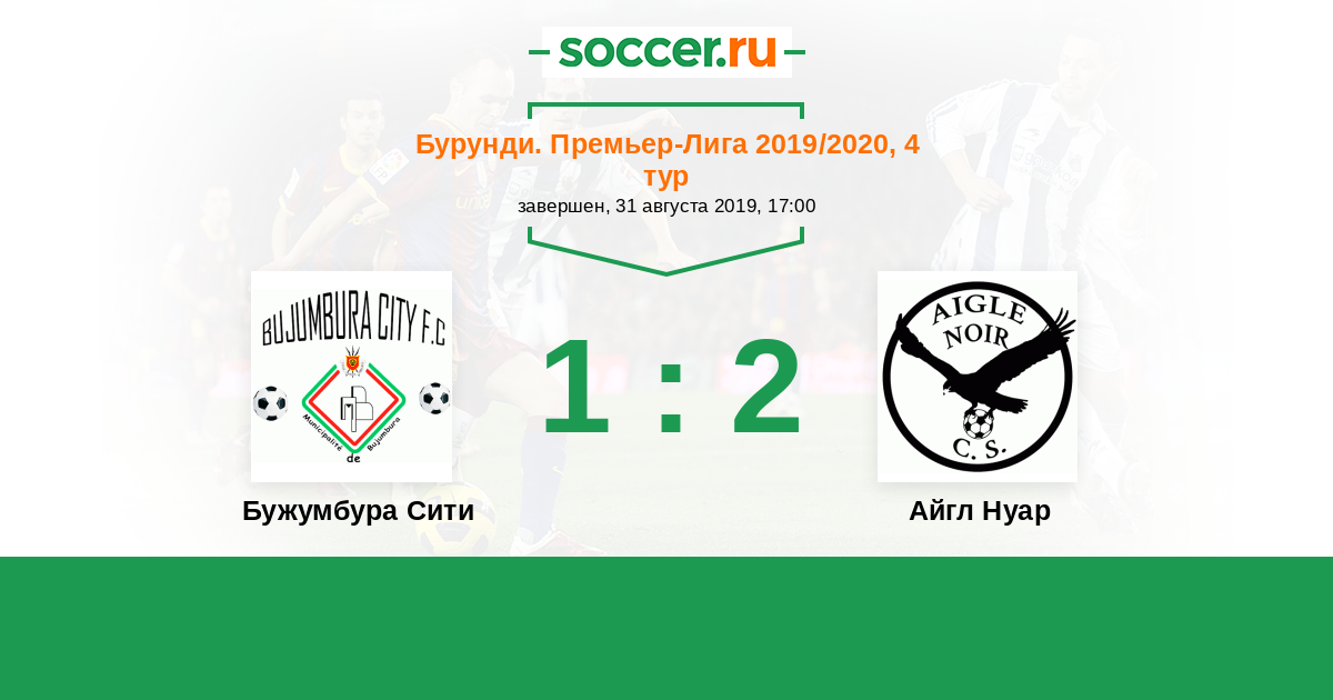 Бурунди. Премьер-лига 20.06.2020 Айгл Нуар Логотип футбольный клуб Айгл Нуар (Макамба) 6:2 Логотип футбольный клуб Бужумбура Сити Бужумбура Сити