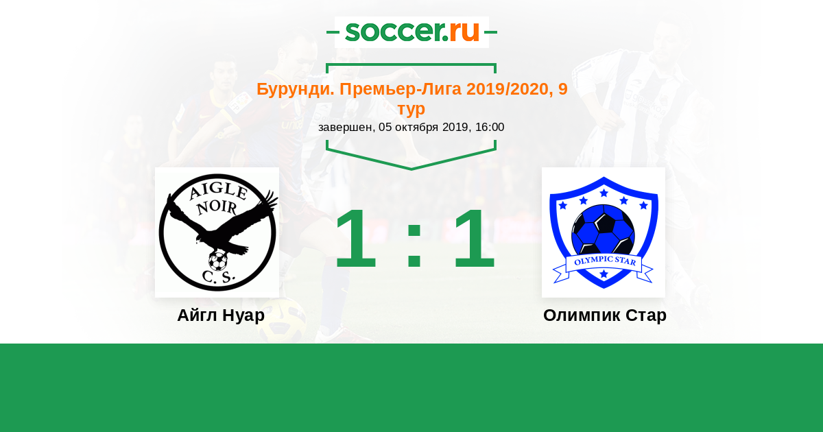 Бурунди. Премьер-лига 24.06.2020 Олимпик Стар Логотип футбольный клуб Олимпик Стар (Муйинга) 2:3 Логотип футбольный клуб Мессаже де Нгози Мессаже де Нгози