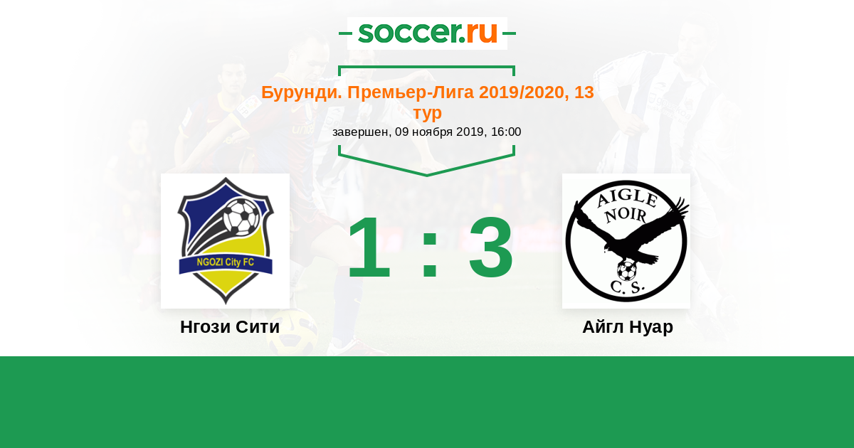 Бурунди. Премьер-лига 01.03.2020 Айгл Нуар Логотип футбольный клуб Айгл Нуар (Макамба) 2:2 Логотип футбольный клуб Нгози Сити (Мвумба) Нгози Сити