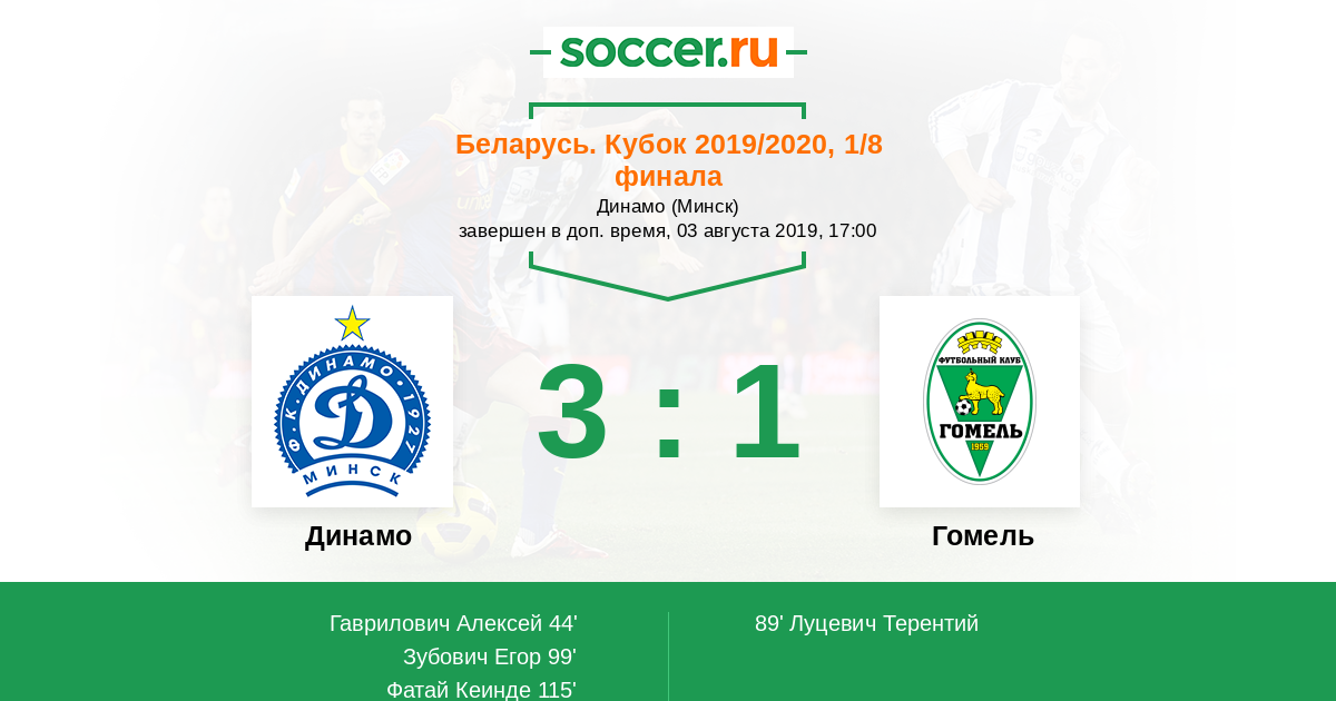 Протокол матча Динамо против Гомель