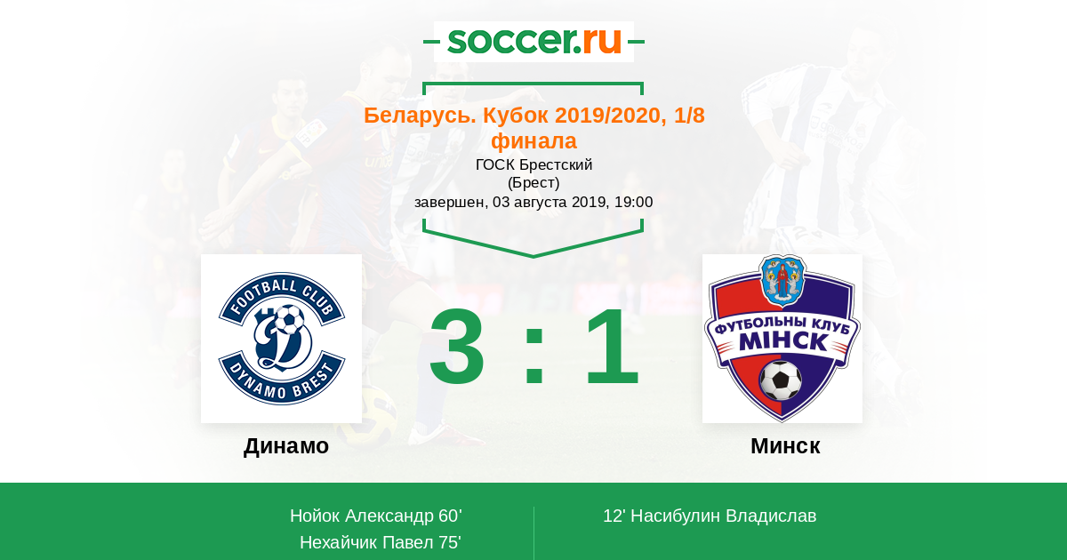 Протокол матча Динамо против Минск