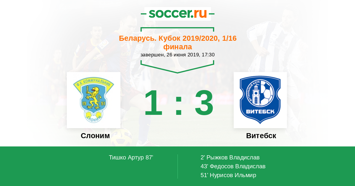 Протокол матча Слоним против Витебск