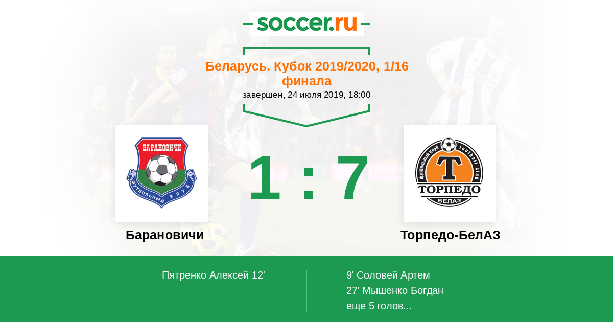 Протокол матча Барановичи против Торпедо-БелАЗ